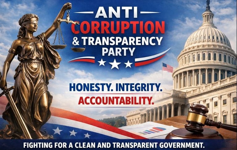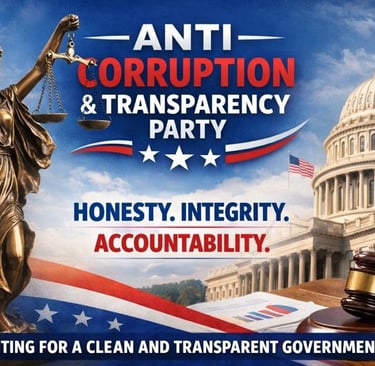 The Anti-Corruption and Transparency Party (ACT Party) is a nascent third-party political movement in the United States, founded in response to high-profile failures in government accountability and transparency such as the Epstein files, the January 6th events, and Operation Arctic Frost and many more. As a grassroots initiative emphasizing America First principles, the party's core mission is to dismantle systemic corruption, restore public trust in institutions, and empower everyday Americans through radical transparency and enforceable accountability measures.